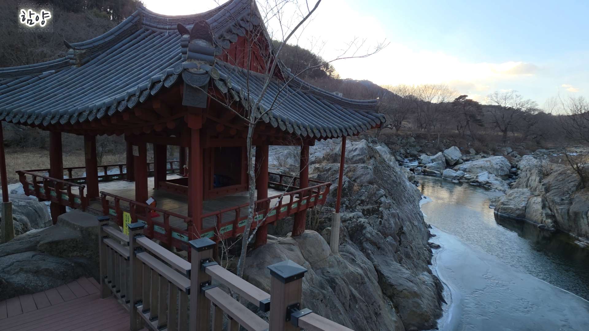 수채화 같은 색감: 겨울의 차분한 공기와 얼어붙은 계곡물, 그리고 고즈넉한 정자의 단청색이 어우러져 한 폭의 수채화 같은 평온함을 선사합니다.