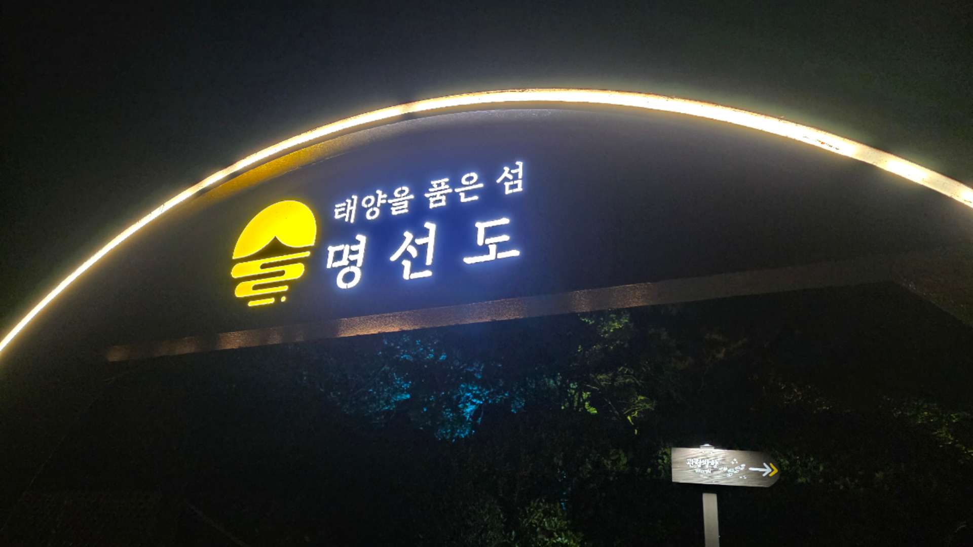 명선도는 낮에는 평범한 섬처럼 보이지만, 밤이 되면 화려한 조명과 미디어아트가 살아 움직이는 '아바타' 속 세상 같은 신비로운 공간으로 바뀝니다.
