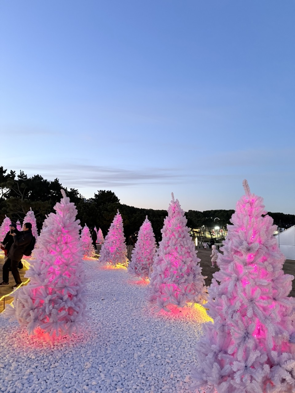 화이트 크리스마스 가든: 하얀 트리들이 가득한 정원은 겨울의 낭만을 더해줍니다.