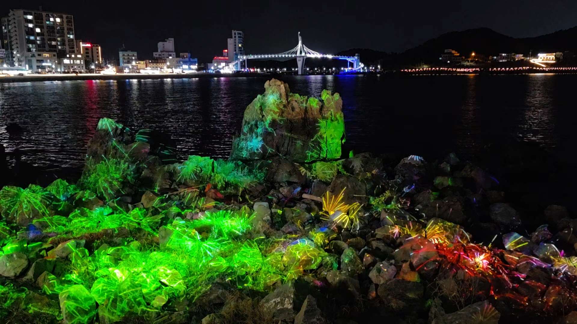 밤: 명선도로 이동해 밤바다 위 펼쳐지는 미디어아트 체험